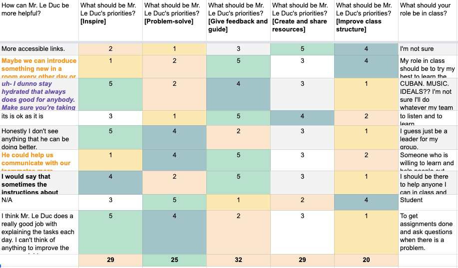 - Student self-reported issues are gathered in class Parking Lot Padlet board